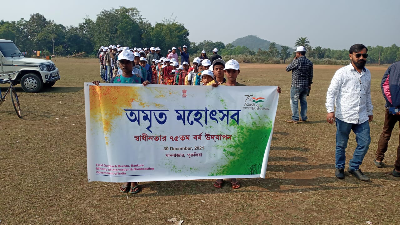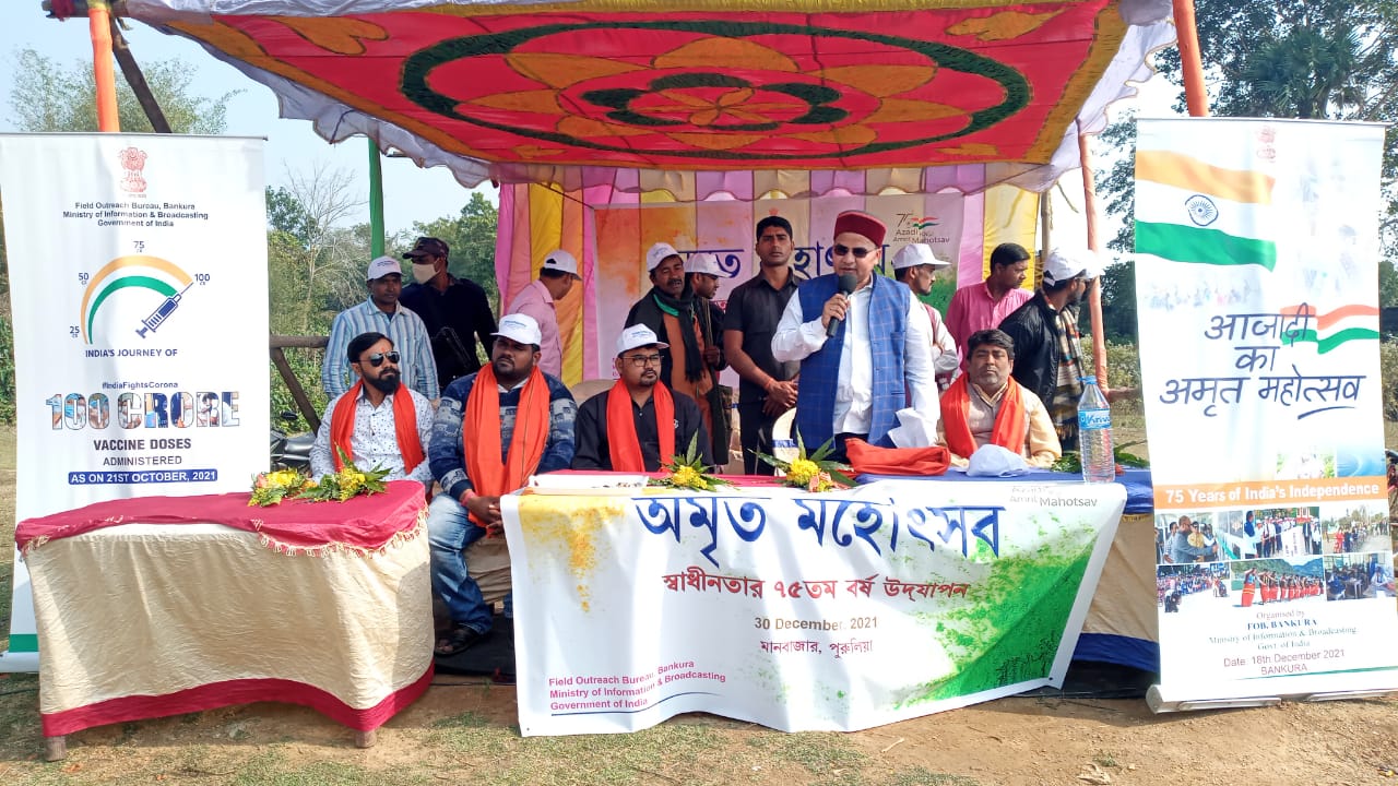 আজ ফিল্ড আউটরিচ ব্যুরো ভারত সরকারের তথ্য ও সম্প্রচার দপ্তর বাঁকুড়া শাখার উদ্যোগে মানবাজার-১ নং ব্লকের গোবিন্দপুর পোড়াডি ময়দানে স্বাধীনতার ৭৫ তম বর্ষপূর্তি উপলক্ষে অমৃত মহোৎসব অনুষ্ঠান পালিত হলো। এদিন ছৌ নিত্য, পাতা নাচ, দেশাত্মবোধক প্রশ্নোওর পর্ব ও বিভিন্ন ধরনের সাংস্কৃতিক অনুষ্ঠানের মধ্য দিয়ে অনুষ্ঠানটি সম্পন্ন হয়।অনুষ্ঠান উপস্থিত ছিলেন পুরুলিয়া জেলা সাংসদ জ্যোতির্ময় সিং মাহাতো, এদিন আদিবাসীদের সঙ্গে পাতা নাচে পা মেলান জেলার সাংসদ সহ আগত বিশিষ্টরা।