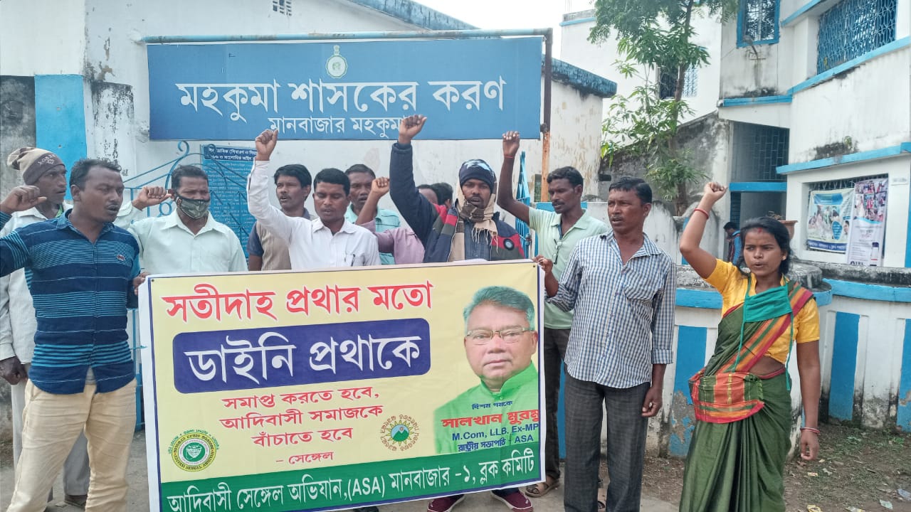 সতীদাহ প্রথার মত ডাইনি প্রথা ও আদিবাসী গ্রাম সমাজে বিপদ ডেকে আনছে তার সাথে ছোঁয়াচে মানসিকতার বিপদজনক অমানবিক পরম্পরা রোধ করার বার্তা সরকারের কাছে তুলে ধরার জন্য মানবাজার মহকুমা শাসকের কাছে লিখিত আকারে ডেপুটেশন জমা দিলো আদিবাসী সিঙ্গেল অভিযান। এর পাশাপাশি মঙ্গলবার মানবাজার-১ নং ব্লক সংগঠন ও পঞ্চা ব্লক সংগঠন ব্লক অফিস ও থানা গুলিতে ডেপুটেশন জমা দেয়। এবিষয়ে আদিবাসী সিঙ্গেল অভিযানের পুরুলিয়া জেলায় জেনারেল সেক্রেটারি শ্যামসুন্দর সরেন বলেন, আদিবাসী সমাজ থেকে ডাইনি প্রথা কে চিরতরে দূর করার জন্য প্রাথমিক স্তরে কিছু পরামর্শ এবং সহযোগিতার প্রার্থনা করলাম, এর পাশাপাশি আমাদের সংগঠনের পক্ষ থেকে বিভিন্ন ভাবে প্রচার চালানো হবে। মঙ্গলবার এই কর্মসূচীতে উপস্থিত ছিলেন আদিবাসী সিঙ্গেল অভিযান পুঞ্চা ও মানবাজার ব্লক কমিটির সভাপতি উকিল হাঁসদা ও আকাশ হাঁসদা।