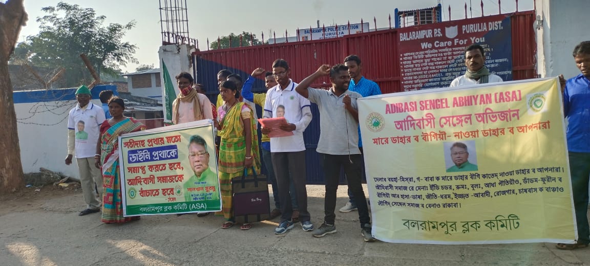 সতীদাহ প্রথার মত ডাইনি প্রথাও আদিবাসী গ্রাম সমাজে বিপদ ডেকে আনছে তার সাথে ছোঁয়াচে মানসিকতার বিপদজনক অমানবিক পরম্পরা রোধ করার বার্তা সরকারের কাছে তুলে ধরার জন্য বৃহস্পতিবার পুরুলিয়ার জেলার বলরামপুর ব্লক সমষ্টি উন্নয়ন আধীকারীক এর কাছে লিখিত আকারে স্বারকলিপি জমা দিলো আদিবাসী সিঙ্গেল অভিযান। এর পাশাপাশি একই বিষয়ে থানা তেও ডেপুটেশন জমা দেয়। এবিষয়ে আদিবাসী সিঙ্গেল অভিযানের বলরামপুর ব্লক কমিটির প্রভারী সুবোদ মুর্মু বলেন, আদিবাসী সমাজ থেকে ডাইনি প্রথা কে চিরতরে দূর করার জন্য প্রাথমিক স্তরে কিছু পরামর্শ এবং সহযোগিতার প্রার্থনা করলাম, এর পাশাপাশি আমাদের সংগঠনের পক্ষ থেকে বিভিন্ন ভাবে প্রচার চালানো হবে।