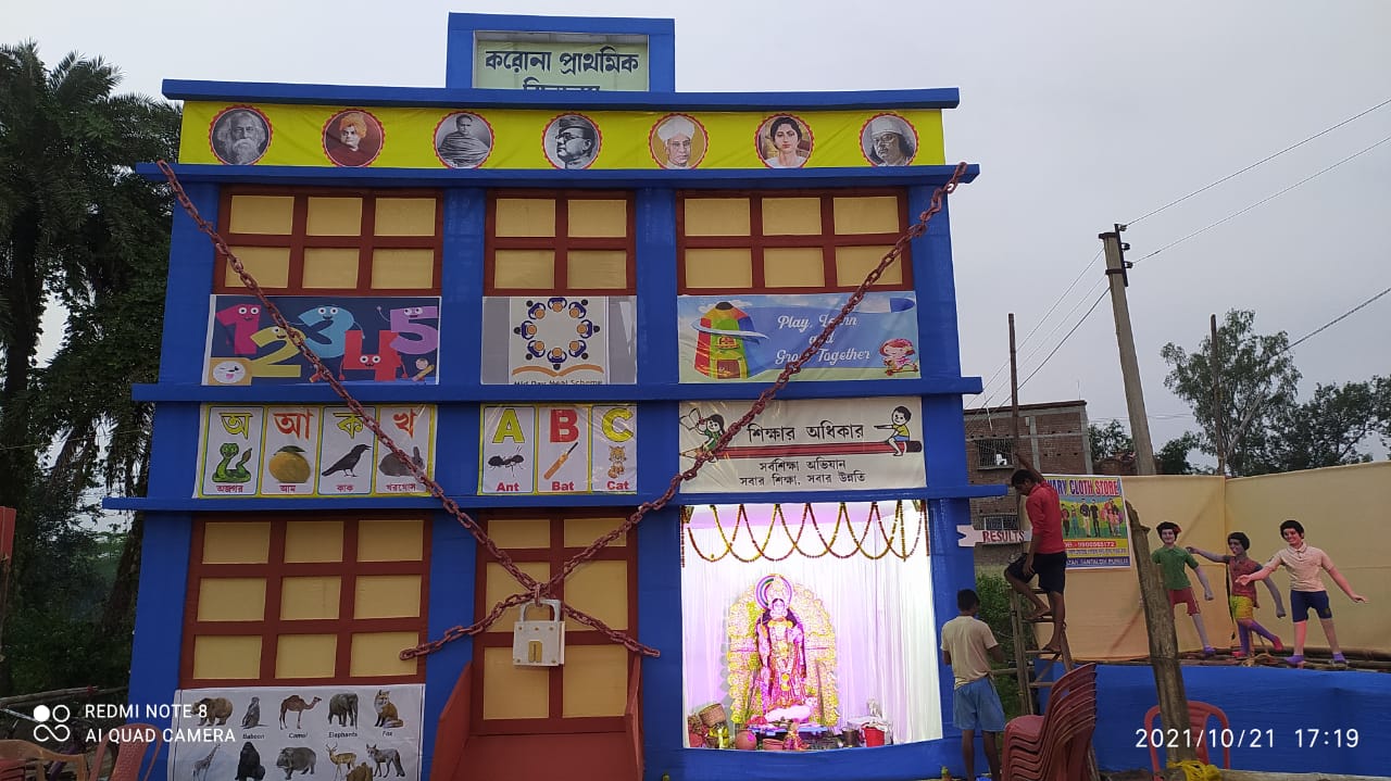 এবছর এই পুজোর থিম “করোনা প্রাথমিক বিদ্যালয়”। উদ্যোক্তাদের বক্তব্য, বিগত প্রায় দুটি বছরের কাছাকাছি সময়ে কোভিড পরিস্থিতিতে বিদ্যালয়ের পড়ুয়াদের, বিশেষত প্রাথমিক স্তরের পড়ুয়াদের শিক্ষা ক্ষেত্রে ব্যপক ক্ষতির সম্মুখীন হতে হয়েছে। সাম্প্রতিক এই জলন্ত সামাজিক সমস্যাটিকে জনসমক্ষে পুজোর থিমের মাধ্যমে তুলে ধরার প্পয়াস করা হয়েছে বলে জানান ক্লাবের সদস্যরা। উদ্যোক্তাদের দাবি, এমনিতে তাঁদের এই লক্ষ্মী পুজো দেখতে বহু দূরদূরান্ত থেকে দর্শনার্থীরা ভিড় করেন প্রতি বছর। তবে কোভিড বিধির কারনে গত বছর থেকে তাঁরা সরকারি বিধিকে মান্যতা দিয়েই পুজোর আয়োজন করছেন বলে জানান।