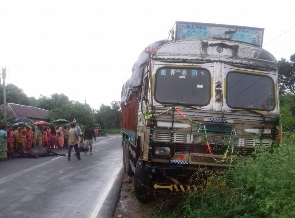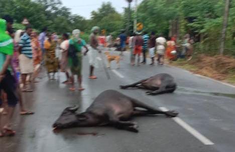 আজ বিকেল নাগাদ পুঞ্চা থানার অন্তর্ভুক্ত চাঁদড়া পায়রাচালী অঞ্চলের শ্রীরামঘুটু গ্রামের কাছে রাজ্য সড়কের উপর লরির ধাক্কায় হলো একটি মোষের। এদিন স্হানীয় সূএে জানা যায় লরিটি পায়রাচালীর দিক থেকে এসে নিয়ন্ত্রণ হারিয়ে রাস্তার উপর দুটি মোষকে স্বজোরে ধাক্কা মারে, ফলে ঘটনাস্থলেই একটি মোষ মারা যায় ও একটি কাড়া গুরুতর ভাবে জখম হয়। এদিন গবাদি পশুর মৃত্যুর জেরে কিছু ক্ষনের জন্য অবরুদ্ধ হয়ে পড়ে রাজ্য সড়ক।