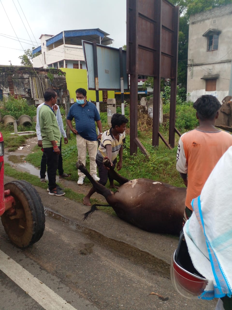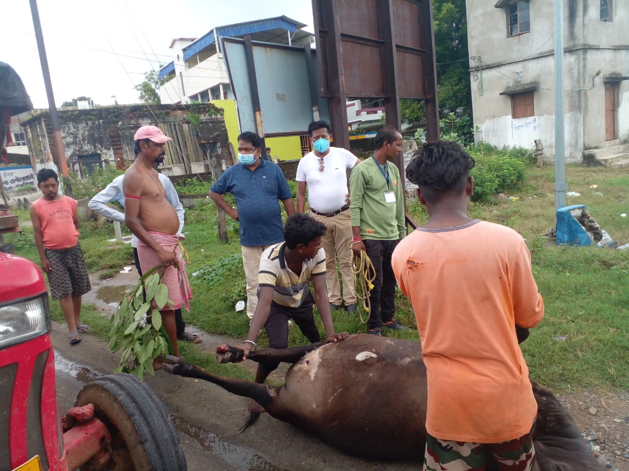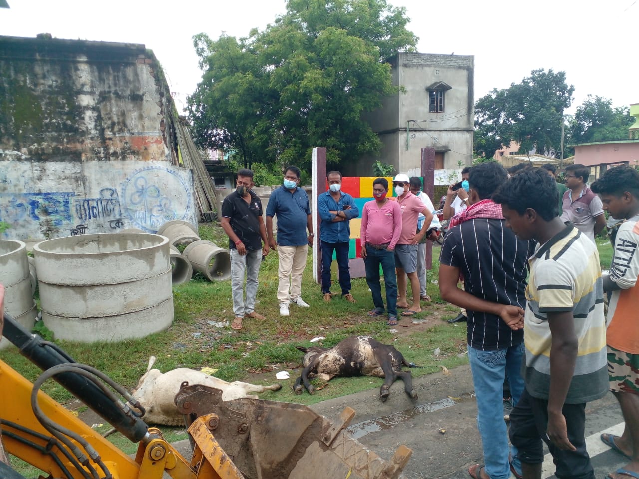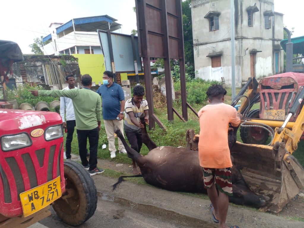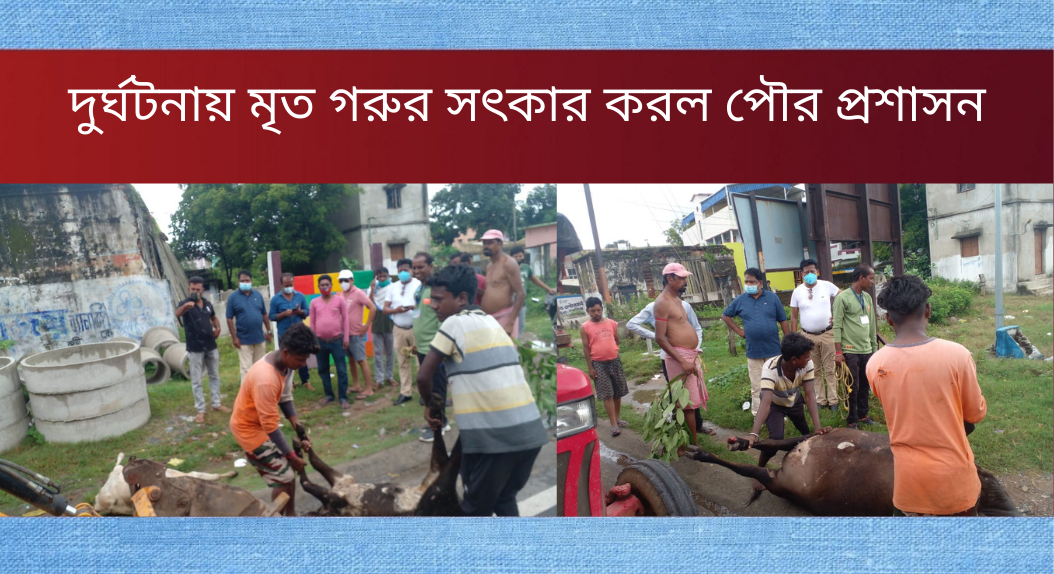 বুধবার সকালে পথ দুর্ঘটনায় মৃত তিনটি গরু রাস্তা থেকে উদ্ধার করে সৎকার করল পুরুলিয়া পৌর প্রশাসন। পৌর প্রশাসক মন্ডলীর এক সূত্রে জানা গিয়েছে, পুরুলিয়া-টাটা সড়কের উপর শহরের দুলমি এলাকায় মঙ্গলবার রাতে পথ দুর্ঘটনায় মারা যায় তিনটি গরু। বুধবার সকালে স্থানীয়দের মাধ্যমে তিনটি মৃত গরুর দেহ রাস্তার উপর পড়ে থাকার খবর পৌঁছয় পৌর প্রশাসনের কাছে। পুরুলিয়া পৌরসভার নব নির্বাচিত চেয়ারম্যান অব বোর্ড অব অ্যাডমিনিস্ট্রেটর নবেন্দু মাহালি বুধবার সকালে একটি হোয়াটস অ্যাপ ম্যাসেজের মাধ্যমে জানান পৌর প্রশাসনের পক্ষ থেকে পে-লোডার, ক্যারিয়ার লরি ও পৌর কর্মীদের সঙ্গে নিয়ে এদিন সকালেই দুর্ঘটনা স্থল থেকে মৃত তিনটি গরুর দেহগুলি উদ্ধার করে যথাযথ ভাবে সৎকারের ব্যাবস্থা করা হয়েছে।