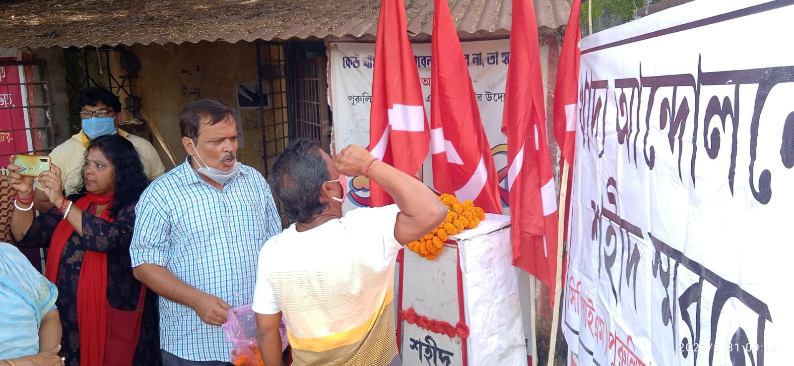 আজ, মঙ্গলবার সি পি আই এম পুরুলিয়া শহর উত্তর এরিয়া কমিটির উদ্যোগে শহরের এরিয়া কমিটির কার্যালয়ে পালিত হল শহীদ দিবস। এরিয়া কমিটি সূত্রে জানা গিয়েছে, ১৯৫৯ সালের খাদ্য আন্দোলনের শহীদদের স্মরণ করার পাশাপাশি খাদ্য আন্দোলনের অন্যতম সৈনিক মধুসূদন বাউরীকে এদিন সম্বর্ধনা জ্ঞাপন করা হয়। উপস্থিত ছিলেন পুরুলিয়া শহর উত্তর এরিয়া কমিটির সম্পাদক নিলয় মুখার্জি, সদস্য ব্যোমকেশ দাস, প্রনব মুখার্জি, জিতেন ওঝা, অমল মিশ্র সহ দলের অন্যান্য এরিয়া ও জেলা নেতৃত্ব।