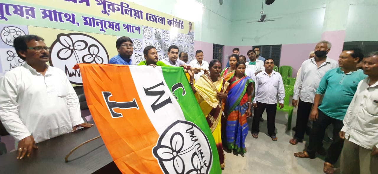 বৃহস্পতিবার পুরুলিয়া জেলা তৃণমূল কংগ্রেসের কার্যালয়ে গিয়ে তৃনমুল কংগ্রেসে যোগদান করলেন মানবাজার-১ পঞ্চায়েত সমিতির অন্তর্ভুক্ত ভালুবাসা গ্রাম পঞ্চায়েতের তিনজন সিপিএমের সদস্যা। এদিন তাদের হাতে দলীয় পতাকা তুলে দেন পুরুলিয়া জেলা তৃণমূল কংগ্রেসের সভাপতি সৌমেন বেলথরিয়া। দলীয় সূএে জানা যায় ভালুবাসা গ্রাম পঞ্চায়েতের তিন জন সদস্যা মনিমালা মাহাতো, লক্ষী মাহাতো ও আরতি রুহিদাস যোগদান করেন তৃণমূলে, যদিও ভালুবাসা গ্রাম পঞ্চায়েত এখন তৃনমূল কংগ্রেস পরিচালিত।আজকের এই যোগদান কর্মসূচীতে উপস্থিত ছিলেন পুরুলিয়া জেলা তৃণমূল কংগ্রেসের চেয়ারম্যান হংসেস্বর মাহাতো, আইএনটিটিইউসি সভাপতি উজ্জ্বল কুমার, জেলা তৃনমুল কংগ্রেসের সেক্রেটারী দিলীপ পাএ সহ দলীয় নেতৃত্বরা।