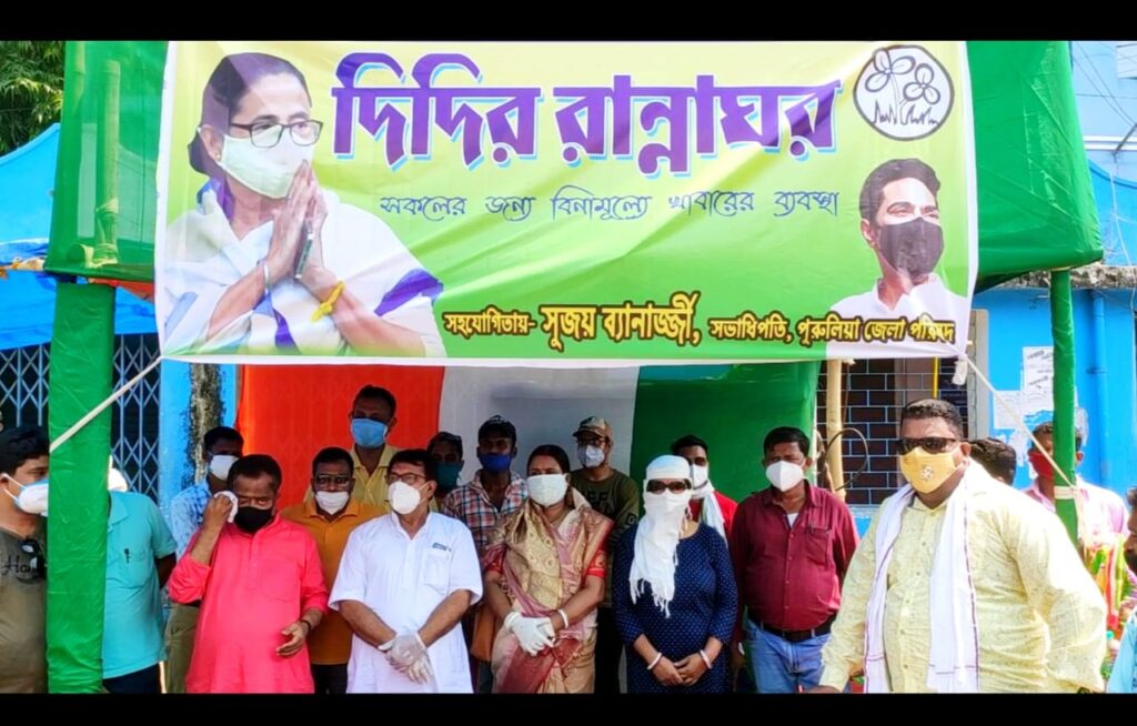 হাসপাতালে ভর্তি রোগীর আত্মীয় এবং লকডাউনে সাধারণ মানুষের মুখে দুপুরের খাবার তুলে দিতে ‘দিদির রান্নাঘর’ নামে কর্মসূচি শুরু করল পুরুলিয়া শহর তৃণমূল যুব কংগ্রেস। এদিন রোগীর আত্মীয়দের খাবার তুলে দেওয়ার কর্মসূচিতে উপস্থিত ছিলেন পুরুলিয়া জেলা পরিষদের সভাধিপতি সুজয় বন্দ্যোপাধ্যায়, বাঘমুণ্ডির বিধায়ক তথা পুরুলিয়া জেলা তৃণমূল যুব কংগ্রেসের সভাপতি সুশান্ত মাহাত, শহর তৃণমূলের সভাপতি গৌরব সিং প্রমুখ। সুজয়বাবু বলেন, শহরের দুটি জায়গাতে এই দিদির রান্নাঘর শুরু করা হল। লকডাউনে হোটেল বন্ধ থাকায় রোগীর আত্মীয় এবং অসহায় মানুষকে যাতে সমস্যায় পড়তে না হয় তার জন্য বিনামূল্যে দুপুরের খাবার খাওয়ানোর এই উদ্যোগ নেওয়া হয়েছে। লকডাউন যতদিন চলবে দিদির রান্নাঘরও চলবে। হাসপাতালের সামনে এবং পুরানো পুলিস লাইন এলাকায় দুটি স্টল করা হয়েছে।