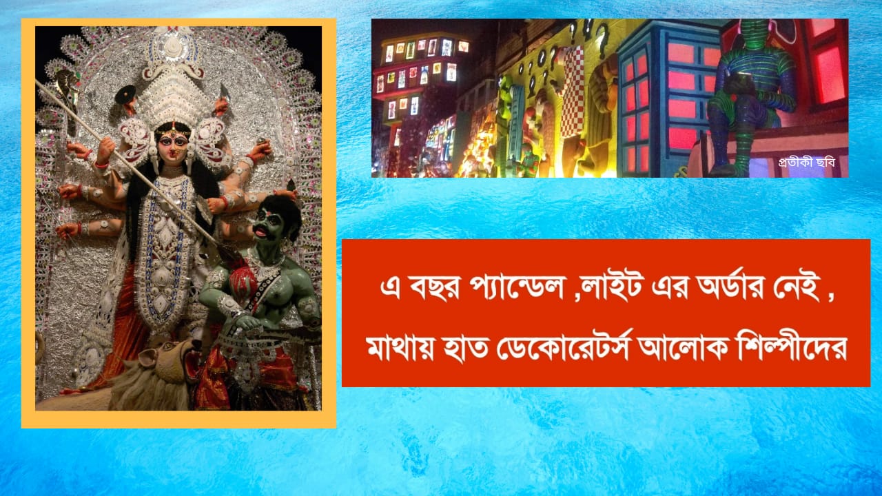 তাই আলােক সজ্জার কাজ যে এবার মাঠে মারা পড়ছে তা মােটামুটি অনুমান করে নিয়েছেন আলােক শিল্পীরা। একই পরিস্থিতি জেলার ডেকোরেটার্সদেরও। এখনাে অর্ডার নেই পুজো প্যান্ডেলের। অডার পাওয়ার আশাও যে নেই, তেমনই ধরে নিয়েছেন।
