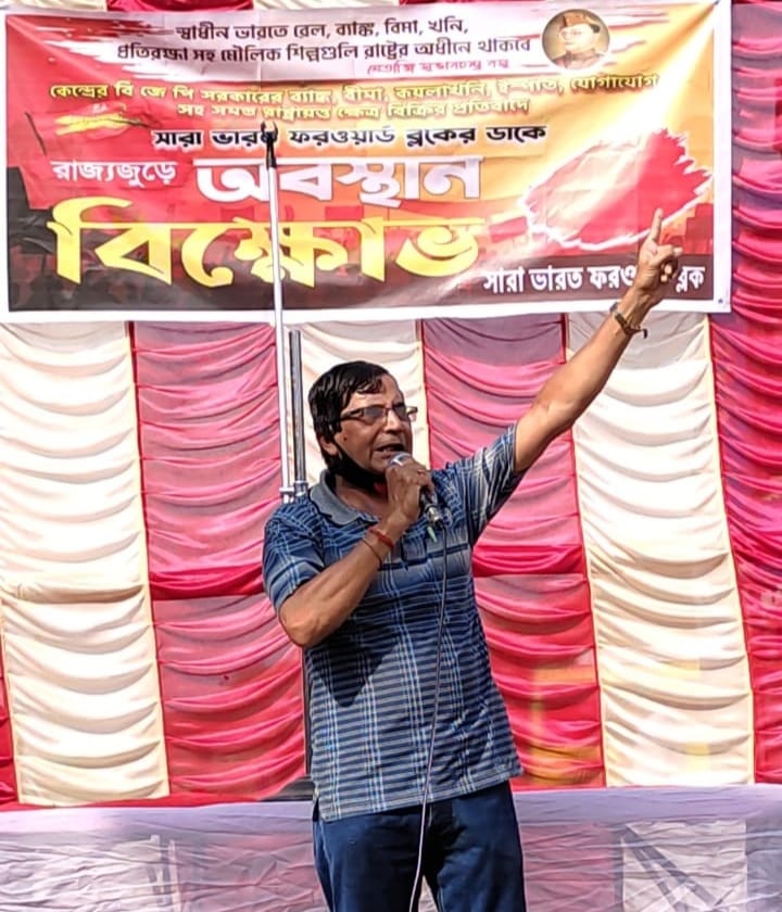 এদিনের বিক্ষোভ অবস্থানে রেল, বীমা, কয়লা খনি, যোগাযোগ বিষয়ক রাস্ট্রায়ত্ত সংস্থাগুলিকে বেসরকারি হাতে বিক্রী করার কেন্দ্রীয় বিজেপি সরকারের নীতির বিরুদ্ধে সোচ্চার হন দলীয় নেতা-কর্মী ও বক্তারা। এদিন পথসভায় বক্তব্য রাখতে গিয়ে ফঃবঃ-র বক্তারা বলেন, রেল, ব্যাঙ্ক, বীমা, কয়লাখনি, যোগাযোগ বিষয়ক সংস্থা (বি এস এন এল), প্রতিরক্ষা বিষয়ক সরঞ্জাম তৈরীর কারখানা সহ বহু লাভজনক রাস্ট্রায়ত্ত সংস্থাকে বেসরকারি হাতে বিক্রি করে দেওয়ার চক্রান্তের মাধ্যমে জনগণের প্রতি রাষ্ট্রীয় দায়বদ্ধতা এড়াতে চায় কেন্দ্রের বিজেপি সরকার। এদিন বক্তারা মঞ্চ থেকে দাবি করেন, কেন্দ্রের বিজেপি পরিচালিত সরকার তাদের ঘোষণামত “মনিটাইজেশন” নামের আড়ালে আগামী কয়েক বছরের মধ্যেই রাস্ট্রায়ত্ত সম্পদ বেসরকারি হাতে বিক্রী করে বেশ কয়েক লক্ষ কোটি টাকা আদায় করার গভীর ষড়যন্ত্রে নেমেছে। এরকম ভাবে লাভজনক রাস্ট্রায়ত্ত সংস্থাগুলি অদূর ভবিষ্যতে বেসরকারি হাতে চলে গেলে দেশব্যাপী চূড়ান্ত বেকার সমস্যার সৃষ্টি হবে এবং অগণিত শ্রমিক-কর্মচারী কাজ হারিয়ে চরম আর্থিক সংকটে পড়বেন। ফলে দেশব্যাপী চূড়ান্ত অর্থনৈতিক মন্দা দেখা দেবে। এদিন বিক্ষোভ সমাবেশে দাবি ফঃবঃ-র বক্তাদের।
