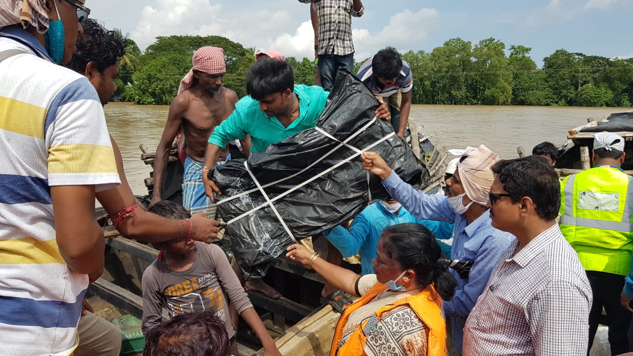 আজ রাজ্যের পশ্চিমাঞ্চল উন্নয়ন পর্ষদের স্বাধীন দায়িত্ব প্রাপ্ত মন্ত্রী সন্ধ্যারানী টুডু বোটে করে বন্যা কবলিত ঘাটালের পরিস্থিতি খাতিয়ে দেখলেন।