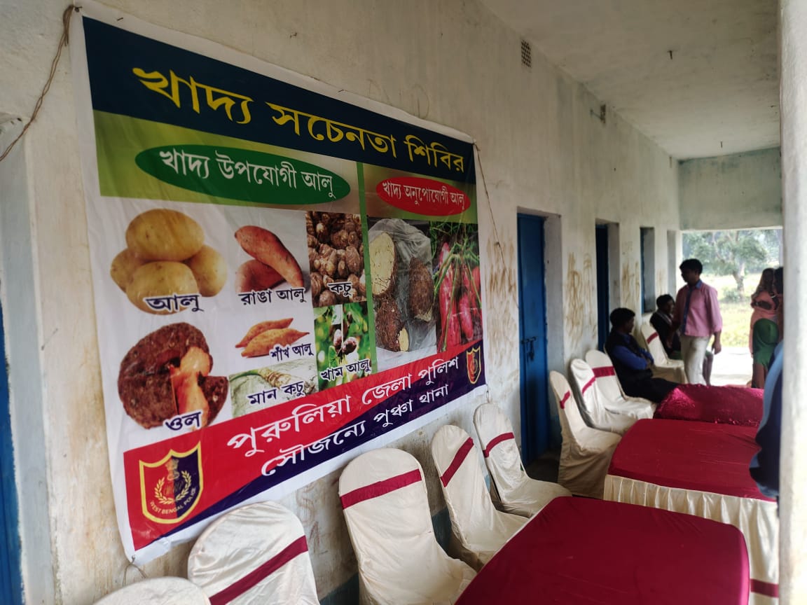 আজ পুরুলিয়া জেলা পুলিশের উদ্যোগে ও পুঞ্চা থানার সহায়তায় নির্ভয়পুর শবর পাড়াতে একটি খাদ্য সচেতনতা মূলক শিবিরের আয়োজন করা হয়।এদিন জোড়গোড়া শিশু শিক্ষা কেন্দ্রে ওই শবর পাড়ার সকল মানুদের একএিত করে সকলকে কি ধরনের আলু খাওয়া যাবে বা কি ধরনের খাবার মানুষের স্বাস্থ্যের পক্ষে উপযোগী সেই বিষয়েও সচেতন করা হয়।