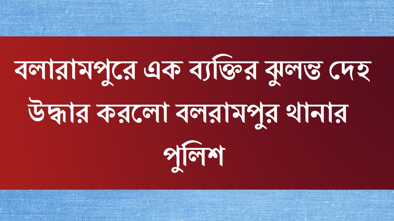 আজ মঙ্গলবার এক ব্যক্তির ঝুলন্ত দেহ উদ্ধার করলো বলরামপুর থানার পুলিশ। ঘটনাটি ঘটেছে বলরামপুর থানার বঙ্গাপটম গ্রামের অদুরে। একটি গাছ থেকে দেহটি উদ্ধার করে পুলিশ বলরামপুর বাঁশগড় গ্রামীণ হাসপাতালে নিয়ে আসে এবং ময়নাতদন্তের জন্য পুরুলিয়া দেবেন মাহাতো সদর হাসপাতালে পাঠানো হবে বলে জানান। মৃত ওই ব্যক্তিটির নাম কলিরাম শবর, বয়স আনুমানিক ৩০ বছর, গ্রাম বরাবাজার থানার বাঁধডি গ্রামে। গত এক থেকে দেড় মাস ধরে তার শশুর বাড়ি বলরামপুর থানার বেলা টোলা বাধাকুলি গ্রামে এসে রয়েছিলেন।