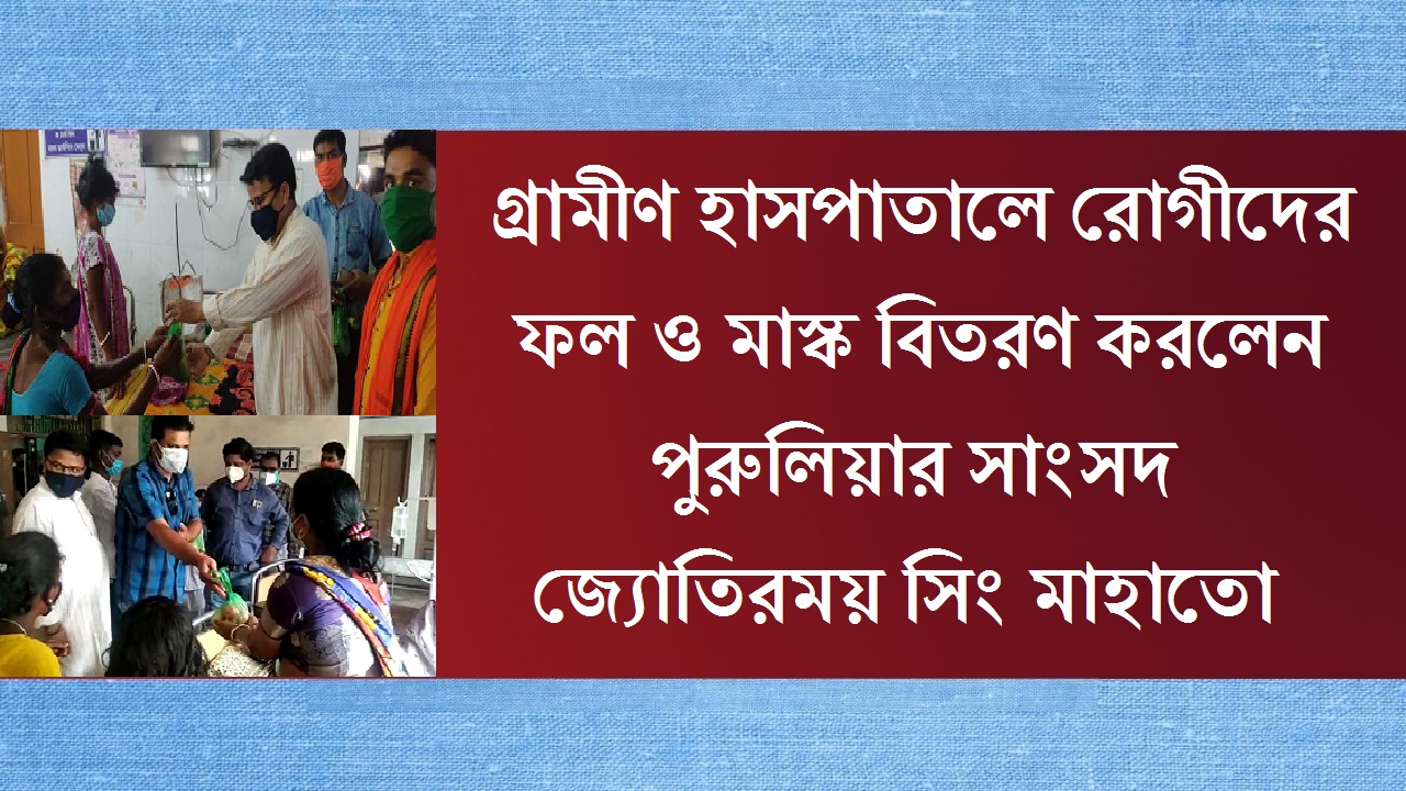 কোভিড মহামারী পরিস্থিতিতে মানবাজার গ্রামীণ হাসপাতালে রোগীদের ফল ও মাস্ক বিতরণ করলেন পুরুলিয়ার সাংসদ জ্যোতিরময় সিং মাহাতো। এদিন তিনি রোগীদের ফল বিতরণ এর পাশাপাশি মানবাজার গ্রামীন হাসপাতালের পরিকাঠামো নিয়ে মানবাজার হাসপাতালের বিএমওএইচ এর সঙ্গে কথা বলেন। এ বিষয়ে পুরুলিয়া জেলা বিজেপির যুব সভাপতি নিলোৎপল সিংহ জানান যে, বিজেপি সরকারের সাত বছর পূর্তি উপলক্ষে তাদের যে সেবা সপ্তাহ চলছে সেই সেবা সপ্তাহ কে সামনে রেখেই আজ মানবাজারে গ্রামীণ হাসপাতাল এ এরকম একটি কর্মসূচি নেওয়া হলো, এদিন রোগীদের ফল বিতরণ এর পাশাপাশি হাসপাতালে পরিকাঠামো নিয়ে বিস্তর আলোচনা করা হয় মানবাজার -১ নং ব্লক স্বাস্থ্য আধিকারিক এর সঙ্গে এবং তিনি দাবী রাখেন মানবাজারের মানুষ যাতে এই হাসপাতাল থেকে ভালো পরিষেবা পান সেই বিষয়ে তারা প্রশাসনিক স্তরে বিস্তর আলোচনা করবেন। এদিন এই কর্মসূচিতে উপস্থিত ছিলেন পুরুলিয়া জেলা বিজেপি সম্পাদক বিবেক রাঙ্গা, পুরুলিয়া জেলার বিজেপির যুব সভাপতি নিলোৎপল সিংহ, মানবাজার বিধানসভার কো-কনভেনার তীর্থনাথ দে, বিজেপির জেলা কমিটির সদস্য দিপু বাউরী, মানবাজার বিধানসভার জেডিপি-২৭ মন্ডলের সভাপতি বাণীপদ কুম্ভকার সহ দলীয় অন্যান্য কার্যকর্তারা।