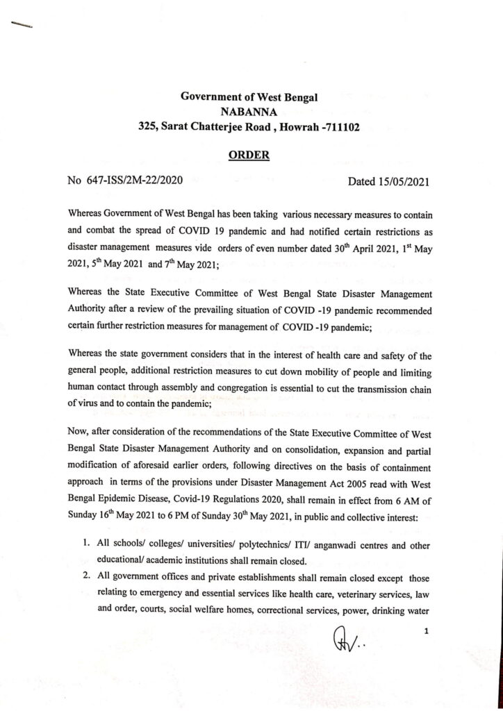 ১. সমস্ত স্কুল / কলেজ / বিশ্ববিদ্যালয় / পলিটেকনিকস / আইটিআই / অঙ্গনওয়াড়ি কেন্দ্র এবং অন্যান্য শিক্ষা / একাডেমিক প্রতিষ্ঠান বন্ধ থাকবে।
