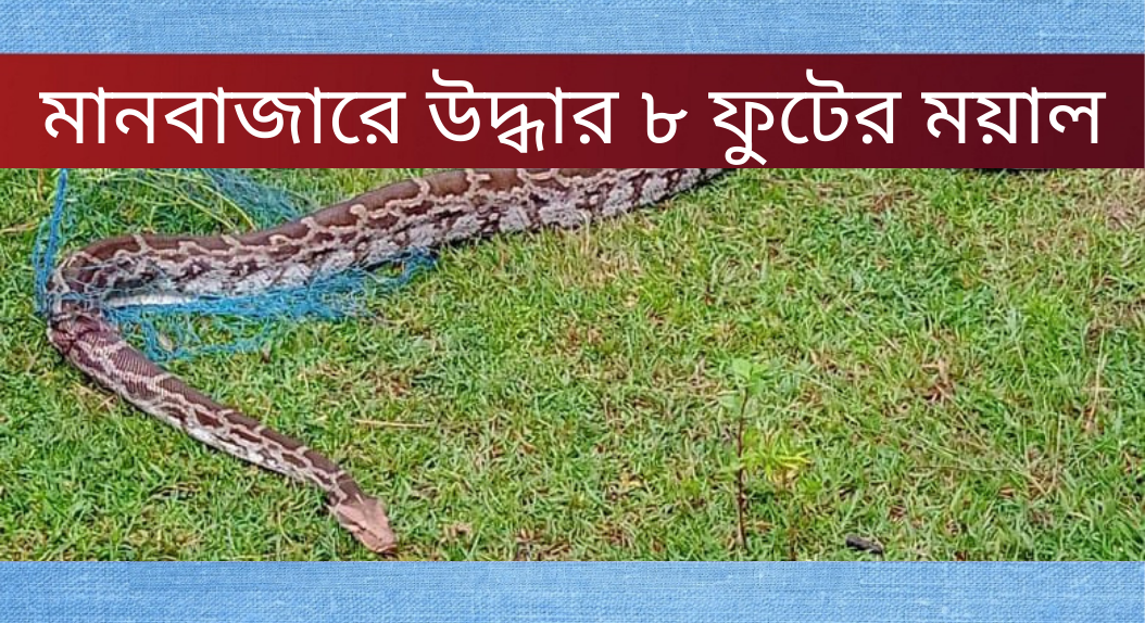পুরুলিয়ার মানবাজার-১ নম্বর ব্লকের নডিহা গ্রামের মানুষজনদের নজরে আসে ধানের ক্ষেতে থাকা একটি জালে জড়িয়ে আছে বিশাল আকৃতির ময়াল সাপটি। খবর জানাজানি হতেই এলাকার মানুষ ভীড় করেন ময়াল সাপ দেখার জন্য। খবর দেওয়া হয় বনদপ্তরে। সিন্দুরপুর বিট অফিসের কর্মীরা তড়িঘড়ি ওই গ্রামে পৌঁছান এবং ৮ ফুট লম্বা ১৬ কেজি ওজনের ওই ময়ালটিকে ঘন্টা খানেক এর প্রচেষ্টায় উদ্ধার করে বনদপ্তর এর কার্যালয়ে নিয়ে আসে।তবে এখন সম্পূর্ণ সুস্থ আছে সাপটি। কিছুক্ষণ পর্যবেক্ষণের পর ছেড়ে দেওয়া হবে জঙ্গলে বলে জানা গেছে বন দপ্তর সূত্রে। বনদপ্তর এর কর্মীরা জানান, প্রত্যন্ত গ্রাম গুলিতে বন্য জীবজন্তু সংরক্ষণ এর বিষয় নিয়ে সচেতনতার প্রচার চালানো হচ্ছে।