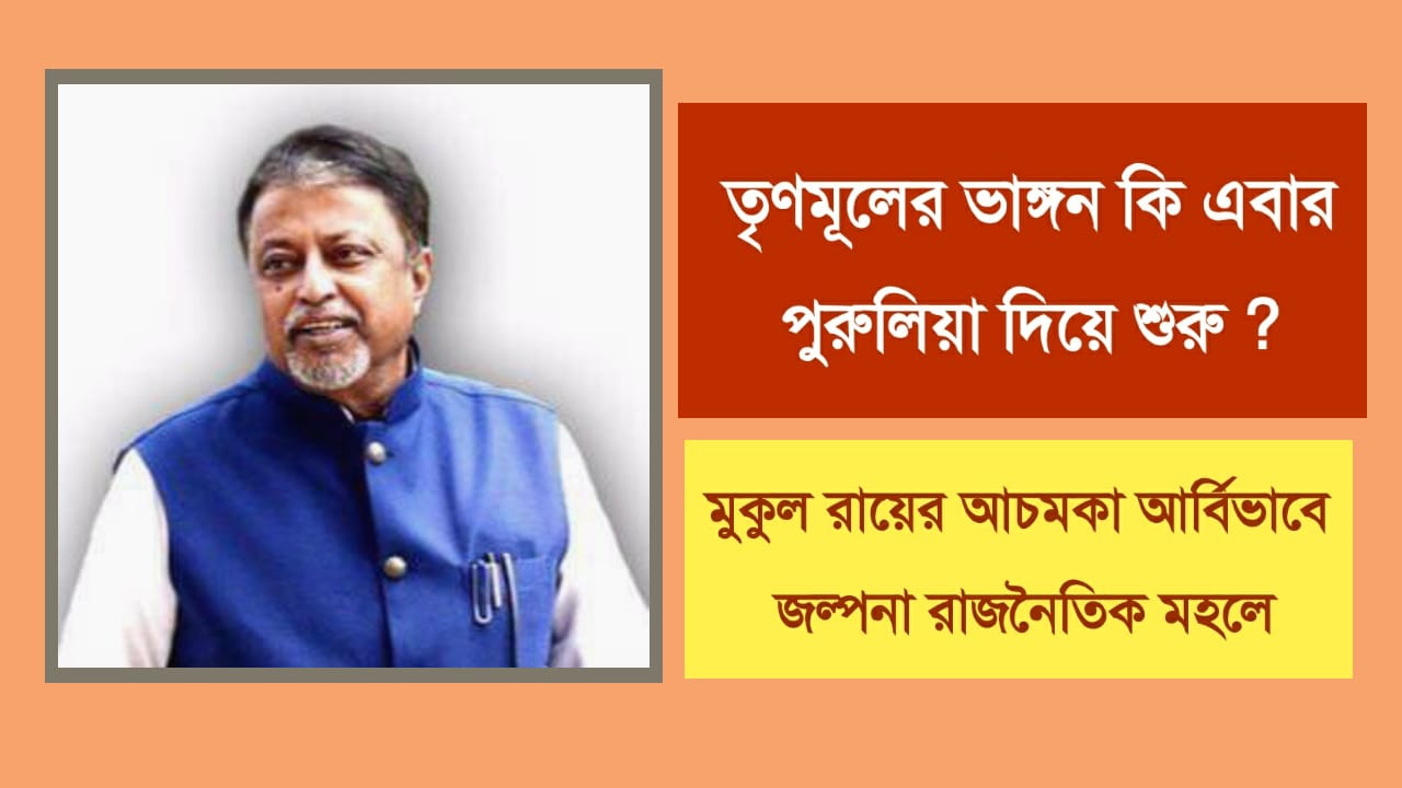 বিধানসভা নির্বাচনের আগে তৃণমূলের ঘরে ভাঙন ধরানাের খেলার শুরু কি এবার পুরুলিয়া থেকেই ? রবিবার আচমকা বিজেপির দলীয় কর্মসূচীতে মুকুল রায়ের আবির্ভাবে জেলার রাজনৈতিক মহলে এ রকমই জল্পনা শুরু হয়েছে। প্রসঙ্গত রবিবার হুটমুড়ার কমিউনিটি হলে জেলা বিজেপির কার্যকারিণী সভা অনুষ্ঠিত হয়। দলের সাংগঠনিকএই বৈঠকে উপস্থিত হন আগের দিনই বিজেপির নব নির্বাচিত সর্ব ভারতীয় সহ সভাপতি মুকুল রায়। আচমকা মুকুলের আবির্ভাবে জল্পনা শুরু হয়েছে জেলার রাজনৈতিক মহলে।