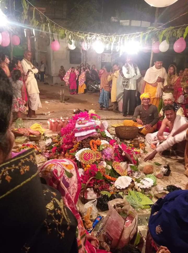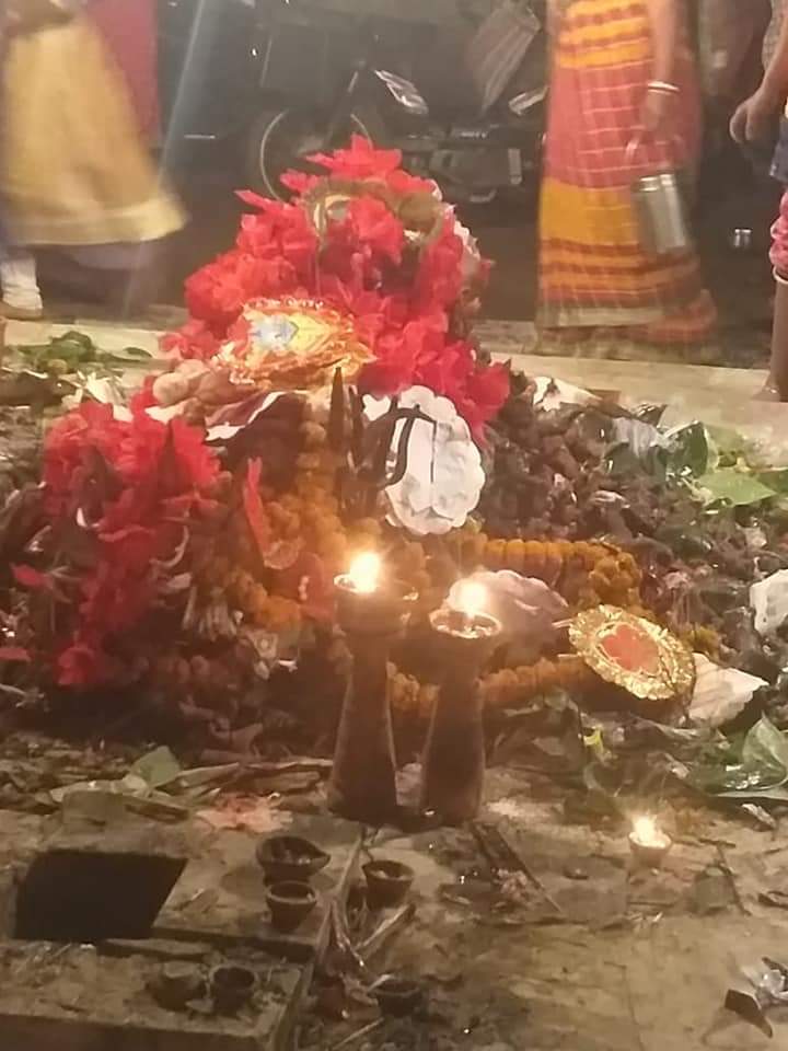 নেই কোনো মন্দির নেই কোনো মাতৃমূর্তি এইভাবেই নিরাকার রূপে পূজো হয় বরাবাজার নামো পাড়ার বেলতলা কালী।