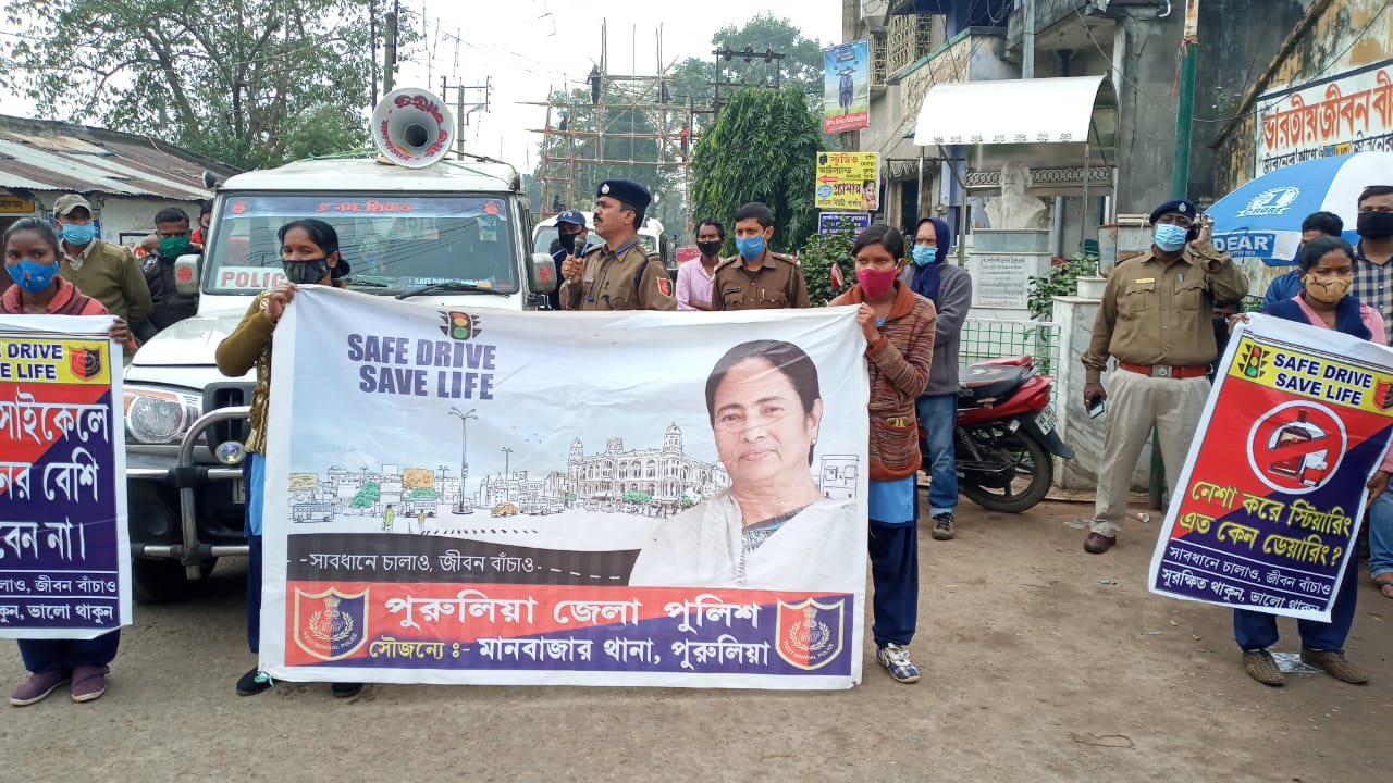 পুরুলিয়া জেলা পুলিশের উদ্যোগে ও মানবাজার থানার সহায়তায় আজ মানবাজার থানা এলাকা জুড়ে পালিত হলো নো এক্সিডেন্টে ডে। এদিন একটি পদযাত্রা সহযোগে মানবাজার থানা এলাকায় একটি মিছিল ও তার সাথে সাধারন মানুষদের পরা,মদ্যপ অবস্থায় গাড়ি চালানো, সিটবেল্ট না বাঁধা পবিত্র বিষয়ে সচেতনতা করা হয়। এদিনই সচেতনতা কর্মসূচিতে উপস্থিত ছিলেন পুরুলিয়া ডিএসপি ট্রাফিক মিহির কুমার দে,মানবাজার সিআই সমীর সরকার, মানবাজার থানার ভারপ্রাপ্ত আধিকারিক দীপঙ্কর সরকার সহ মানবাজার থানার অন্যান্য আধিকারিকেরা ও সিভিক ভলেন্টিয়াররা। এদিন ডিএসপি ট্রাফিক সাধারণ মানুষের উদ্দেশ্যে সচেতন বার্তা প্রদানের পাশাপাশি, ট্রাফিক সংক্রান্ত বিভিন্ন আইন কানুন সম্পর্কে সাধারণ মানুষকে অবহিত করেন।