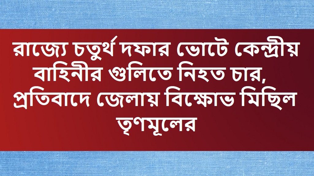 পশ্চিমবঙ্গের বিধানসভা নির্বাচনের চতুর্থ দফার ভোটের দিন অশান্তির জেরে শীতলকুচি হলো রক্তাক্ত। চলল কেন্দ্রীয় বাহিনীর গুলি, নিহত হয় চার জন। তারই প্রতিবাদে তৃনমূল সুপ্রিমো মমতা বন্দোপাধ্যায়ের নির্দেশে রাজ্যের প্রতিটি ব্লকে তৃনমূল কংগ্রেসের পক্ষ থেকে ধিক্কার মিছিল করা হলো।