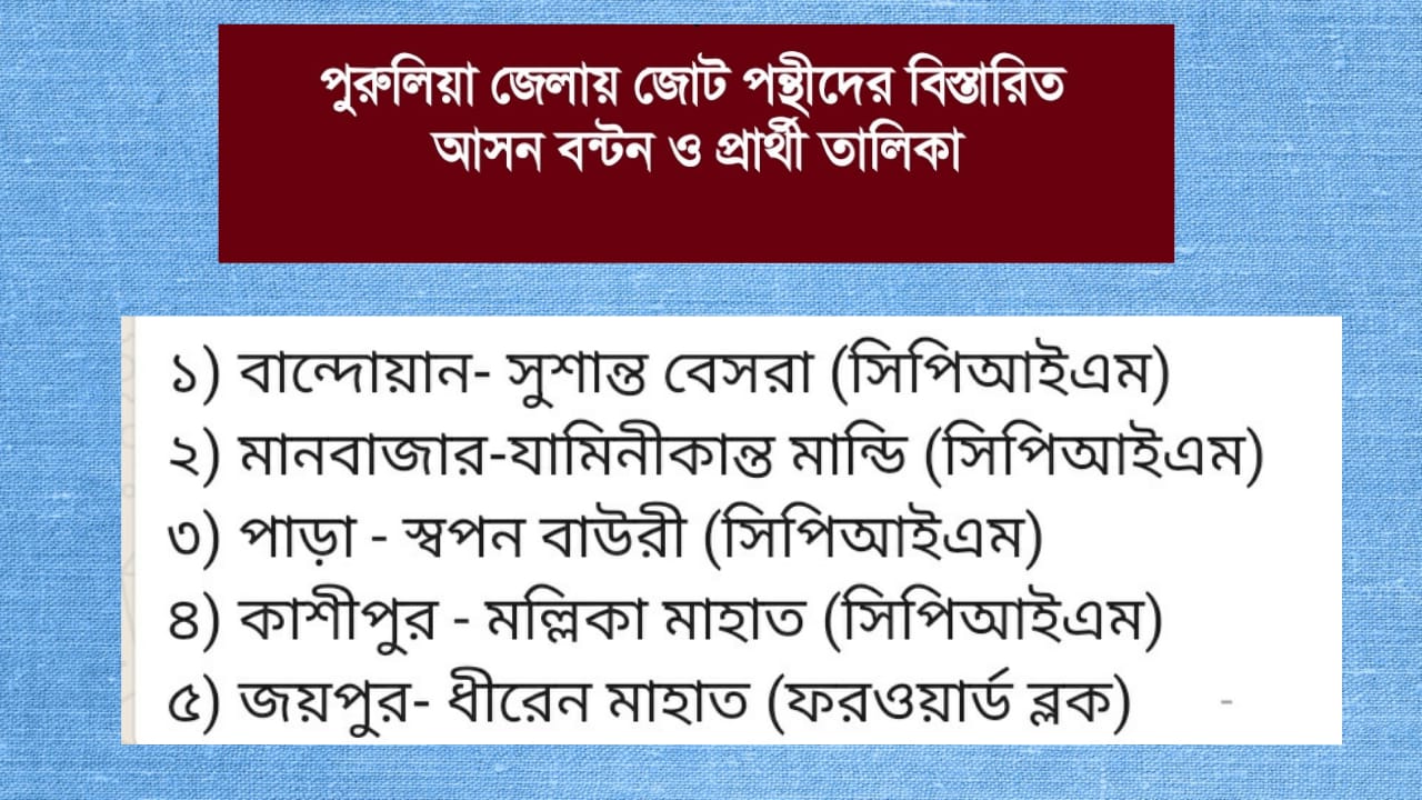 জেলার পাঁচটি কেন্দ্রে জোটের পক্ষে বামপন্থীদের প্রার্থী তালিকাঃ-