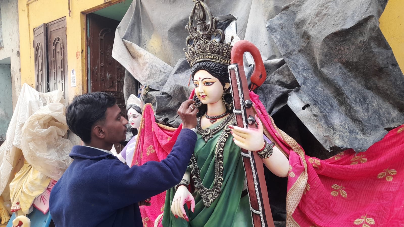 নিজস্ব সংবাদদাতা, পুরুলিয়া : সরস্বতী পুজোর দোরগোড়ায়। তাই বিদ্যার দেবী সরস্বতী প্রতিমা তৈরিতে ব্যস্ত পুরুলিয়ার মৃৎশিল্পীরা। হাতে গোনা কয়েকটা দিন মাত্র বাকি। শীতকে উপেক্ষা করে প্রতিমা তৈরিতে ব্যস্ত মৃৎশিল্পীরা । রাত জেগে চলছে প্রতিমাতে শেষ রং এর টান দিতে ব্যস্ত শিল্পীরা। এমনই ছবি ধরা পড়ল পুরুলিয়া শহরে।
