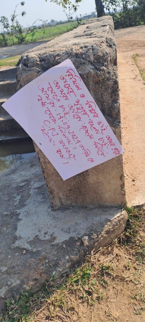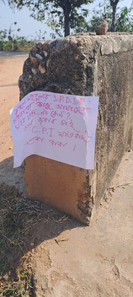 লোকসভা ভোটের মুখে মাওবাদী নামাঙ্কিত পোস্টার উদ্ধার ঘিরে চাঞ্চল্য ছড়িয়েছে এলাকায়। গত ১১ মার্চ ভোর বেলা কোটশিলা থানার বেগুনকোদর – মুরগুমা রাস্তার কাশিঘুটুয়া গ্রামের অদূরে সাহারজোড় নদীর সেতু চেপটি কুল নামক স্থানে পোস্টার উদ্ধার করেন পুলিশ। এদিন সকালে ওই পোস্টারগুলি লক্ষ্য করে স্থানীয় বাসিন্দারা, পরে পুলিশকে খবর দেওয়ার পর পুলিশ এসে পোস্টার উদ্ধার করে নিয়ে যান। মাওবাদী নামাঙ্কিত ওই পোস্টারে আগামী ১৪ই মার্চ বনধের ডাক দেওয়া হয়েছে। এছাড়াও তৎকালীন মাও নেতা রিমিল এবং বিপ্লবের মৃত্যুর বদলা নেওয়ার হুঁশিয়ারি দেওয়া হয়েছে।বলা হয়েছে এস পি, ডি এস পি এর কাছে আমাদের খবর যাচ্ছে না কেন। আবার আমরা জঙ্গলে ফিরে যেতে চাই। এমন পোষ্টার ঘিরে চাঞ্চল্য ছড়িয়েছে এলাকায়।