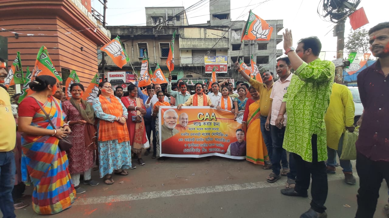 দেশজুড়ে CAA লাগুর জন্য প্রধানমন্ত্রী নরেন্দ্র ও অমিত শাহকে ধন্যবাদ জানালেন পুরুলিয়ার বিজেপি নেতাকর্মী সমর্থকরা । এদিন পুরুলিয়া শহরের ট্যাক্সিস্ট্যান্ডে জমায়েত করে বিজেপির নেতাকর্মীরা গেরুয়া আবির গায়ে মেখে শুভেচ্ছা জ্ঞাপন করেন প্রধানমন্ত্রী ও অমিত শাহকে।