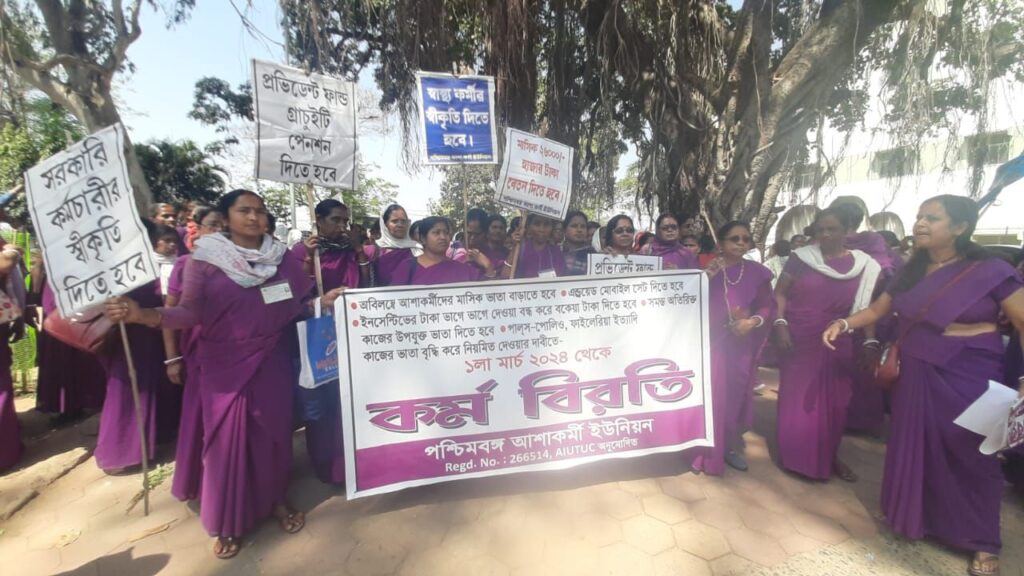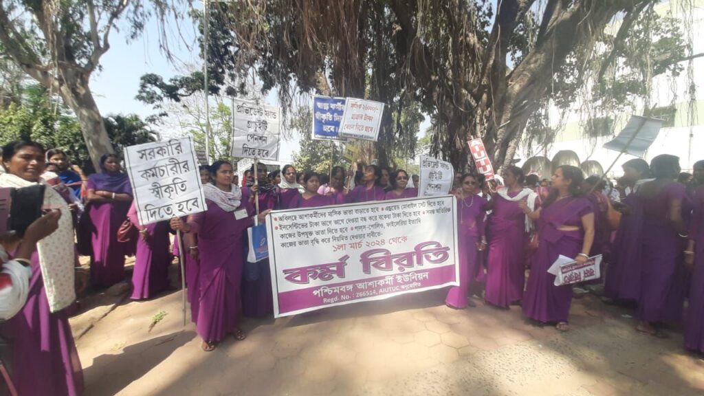 রাজ্যের বিভিন্ন জেলার সাথে সাথে পুরুলিয়া জেলাতেও অনির্দিষ্টকালের জন্য কর্মবিরতির ডাক দিল আশাকর্মীরা। মাসিক ভাতা বাড়ানো, অতিরিক্ত কাজের ভাতা প্রদান, সকলকে এন্ড্রোয়েড মোবাইল প্রদান সহ একাধিক দাবিতে আজ থেকে কর্মবিরতির পথে হাঁটলো পুরুলিয়ার প্রায় ১৮০০ আশাকর্মী। এদিন এই সমস্ত দাবিতে পুরুলিয়া শহরের জুবিলী ময়দানে জমায়েত করে নিজেদের দাবিদাওয়া ভিত্তিক ব্যানার পোষ্টার হাতে নিয়ে মিছিল করেন তারা। পরে জেলা মুখ্য স্বাস্থ্য আধিকারিকের দপ্তরে অবস্থান বিক্ষোভে সামিল হন আশাকর্মীরা।