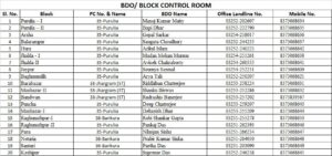 ২০ টি ব্লকের কন্ট্রোল রুমের বিস্তারিত যোগাযোগ তথ্য জানতে নীচের তালিকা দেখুনঃ