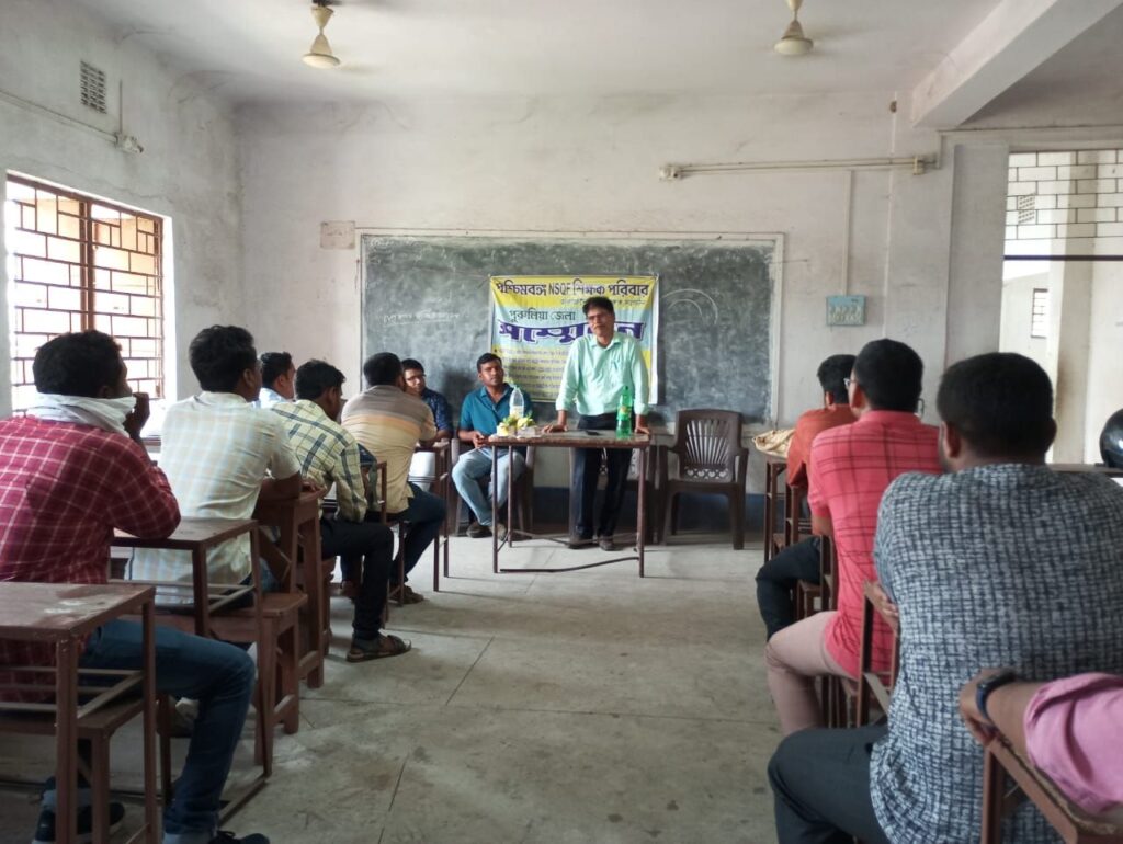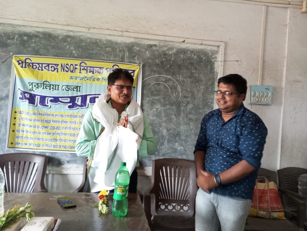পশ্চিমবঙ্গ ন্যাশনাল স্কিলস কোয়ালিফিকেশন ফ্রেমওয়ার্ক শিক্ষক পরিবার সংগঠনের উদ্যোগে বৃহস্পতিবার প্রথম বর্ষ জেলা সম্মেলন অনুষ্ঠিত হলো পুরুলিয়া টাউন হাইস্কুলে। সম্মেলনে প্রধান অতিথি হিসেবে উপস্থিত ছিলেন স্কুলের প্রধান শিক্ষক শ্রীপতি কুইরি, জেলার বিভিন্ন প্রান্ত থেকে আসা শিক্ষক,শিক্ষিকারা। মূলত সমগ্র শিক্ষা মিশনের অন্তর্গত ন্যাশনাল স্কিলস কোয়ালিফিকেশন ফ্রেমওয়ার্ক বিভাগে স্কুল শিক্ষা দপ্তরের অধীনে নবম থেকে দ্বাদশ শ্রেণী পর্যন্ত সিলেবাসে অন্তর্ভুক্ত বিভিন্ন বৃত্তিমূলক বিষয়গুলি (যেমন : অটোমোটিভ, প্লাম্বিং, ট্যুরিজম এণ্ড হসপিটালিটি, আইটি, অ্যাপারেল ইত্যাদি) পুরুলিয়ায় ৬০ টি সরকার ও সরকার পোষিত উচ্চমাধ্যমিক বিদ্যালয়ে পঠন পাঠন চলছে। প্রতিটি বিদ্যালয়ে ২ টি করে বিষয় চালু আছে। ২০১৩ সালে সারা রাজ্যে ৯৩ টি স্কুলে মাত্র ৪ টি বিষয় নিয়ে চালু হলেও বর্তমানে রাজ্যের ১৬১১ টি উচ্চমাধ্যমিক বিদ্যালয়ে ১৬ টি বৃত্তিমূলক বিষয়ের পঠন পাঠন চালু রয়েছে । এটি মূল শিক্ষা ব্যবস্থার সাথে যুক্ত থাকলেও স্কুল শিক্ষা দপ্তর কারিগরী দপ্তরকে দিয়ে পরিচালনা করছে এবং এই সরকারী শিক্ষা ব্যবস্থা কারিগরী দপ্তর বেশ কিছু বেসরকারী সংস্থাগুলোকে দিয়ে “ভোকেশনালাইজেশন অফ্ স্কুল এডুকেশন” পরিচালনা করছে, যার ফলে এই বিষয়ে নিযুক্ত শিক্ষকদের নানান সমস্যায় পড়তে হচ্ছে বলে অভিযোগ। দীর্ঘ ১১ বছর ধরে তাঁদের সাথে বঞ্চনা করা হচ্ছে বলে অভিযোগ।সরকারী শিক্ষা ব্যবস্থায় বেসরকারী সংস্থা দ্বারা নিয়োগ বন্ধ করে স্থায়ী নিয়োগের দাবি নিয়েও সম্মেলনে আলোচনা হয়। জেলা সম্মেলনে শিক্ষকদের স্থায়ীকরণ, বেতন বৃদ্ধি এবং বেতন পরিকাঠামোর দাবী নিয়ে আলোচনা করা হয় এবং জেলার প্রতিটি বিদ্যালয়ে ছাত্র ছাত্রীরা যাতে হাতে কলমে এই বৃত্তিমূলক বিষয়গুলি শিখতে পারে বা পঠন পাঠনে সুবিধা পায় সে বিষয়েও আলোচনা করা হয়। বেসরকারী সংস্থাগুলি অনৈতিকভাবে শিক্ষকদের প্রাপ্য বেতন থেকে পিএফ এবং ইএসআইসি এর দুটো শেয়ারের অংশ কেটে নিচ্ছে বলে অভিযোগ। সম্মেলনে নতুন জেলা কমিটি গঠিত হয়। জেলা আহ্বায়ক হিসেবে শোভন মাজি, জেলা সম্পাদক সৌভিক মাজী এবং জেলা সভাপতি সুপ্রতিম ওঝার নাম নির্বাচিত করে ঘোষণা করা হয়।