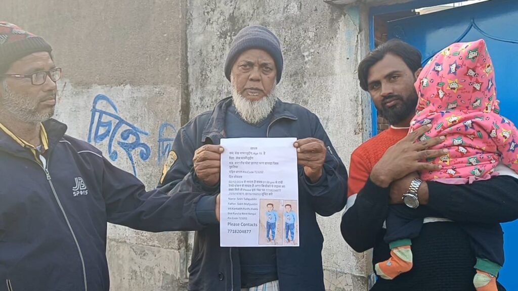 নিজস্ব সংবাদদাতা, পুরুলিয়া: এক মাস ধরে নিখোঁজ বালক চিন্তায় কাঁটাডি গ্রামের শেখ পরিবার | পরিবার সূত্রে জানা যায় গত ২/১২/ ২০২৪ ঝালদা থানার কাঁটাডি গ্রামের শেখ সাফাজুদ্দিন বয়স পনেরো তার বাবা শেখ মফিজুদ্দিন এর সাথে দেখা করতে ঝালদা থেকে ট্রেনে ঝাড়খণ্ডের রাঁচি স্টেশন যায় | কিন্তু সেই দিনেই তার বাবা ঝালদার কাঁটাডি গ্রামে চলে আসেন | সন্ধ্যা পর্যন্ত বালক বাড়ি ফেরে নি। ঝালদা থানায় নিখোঁজের অভিযোগ করা হয়েছে। আজও কোনো খোঁজখবর নেই সাফাজুদ্দিনের। চিন্তায় গোটা পরিবার | নিখোঁজ সাফাজুদ্দিনের দাদা শেখ মোহাম্মদ জানান বাবা রাঁচিতে কাজ করেন। ভাই এর আগেও কয়েকবার বাবার সাথে দেখা করতে গেছে। এবার কেন বাড়ি ফিরলো না তা বুঝতে পারছি না। রাঁচি সহ ঝালদা পুরুলিয়া বিভিন্ন স্থানে পোস্টার দিয়েছি ভাইয়ের ছবি ঠিকানা ও যোগাযোগ নাম্বার সহ |কোন সহৃদয় ব্যক্তির নজরে পড়লে যদি খবর পাই। ভাই ফিরে আসার অপেক্ষায় সারা পরিবার রয়েছি।