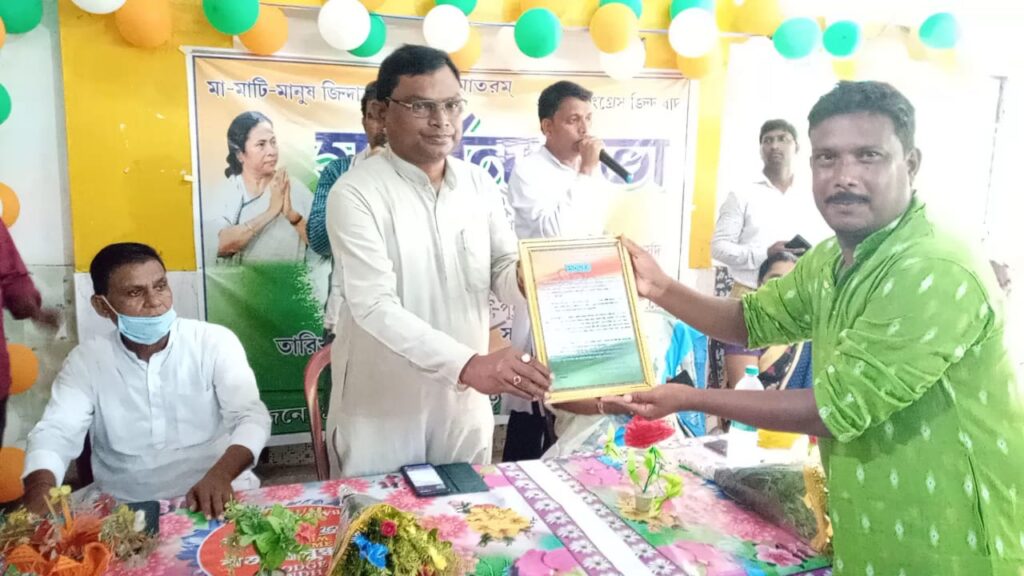 করোনা পরিস্থিতির মধ্যে দিয়েও সমস্ত কিছু কোভিড বিধিনিষেধ মেনে আজ মানবাজার-১ নং ব্লক তৃণমূল কংগ্রেসের পক্ষ থেকে রাজ্যে পশ্চিমাঞ্চল উন্নয়ন দপ্তরের স্বাধীন দায়িত্বপ্রাপ্ত মন্ত্রী সন্ধ্যারানী টুডু ও পুরুলিয়া জেলা পরিষদের শিক্ষা ও ক্রিড়া কর্মাধ্যক্ষ তথা পুরুলিয়া জেলা তৃণমূল কংগ্রেসের গুরুপদ টুডুকে সংবর্ধনা দেওয়া হলো। শুক্রবার মন্ত্রী সন্ধ্যারানী টুডু ও জেলা সভাপতির হাতে মানপএ ও পুস্পস্তবক তুলে দেওয়া হয় মানবাজার-১ নং ব্লক তৃণমূল কংগ্রেসের পক্ষ্য থেকে। আজকের এই সংবর্ধনায় উপস্থিত ছিলেন মানবাজার-১ নং পঞ্চায়েত সমিতির সভাপতি পুস্প দাস, মানবাজার-১ নং ব্লক তৃণমূল কংগ্রেসের সভাপতি দেবেন্দ্রনাথ মাহাতো, সহ সভাপতি অপূর্ব সিংহ, মানবাজার অঞ্চল সভাপতি মানবেন্দ্র চক্রবর্তী সহ দলীয় অন্যান্য কর্মী ও সমর্থকেরা।