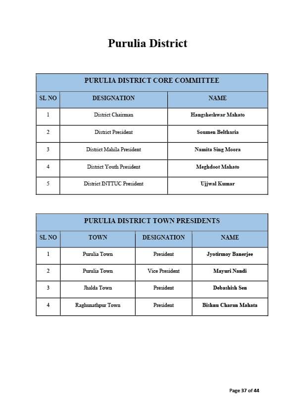 এক নজরে জেলা তৃণমূলের নতুন কোর কমিটি