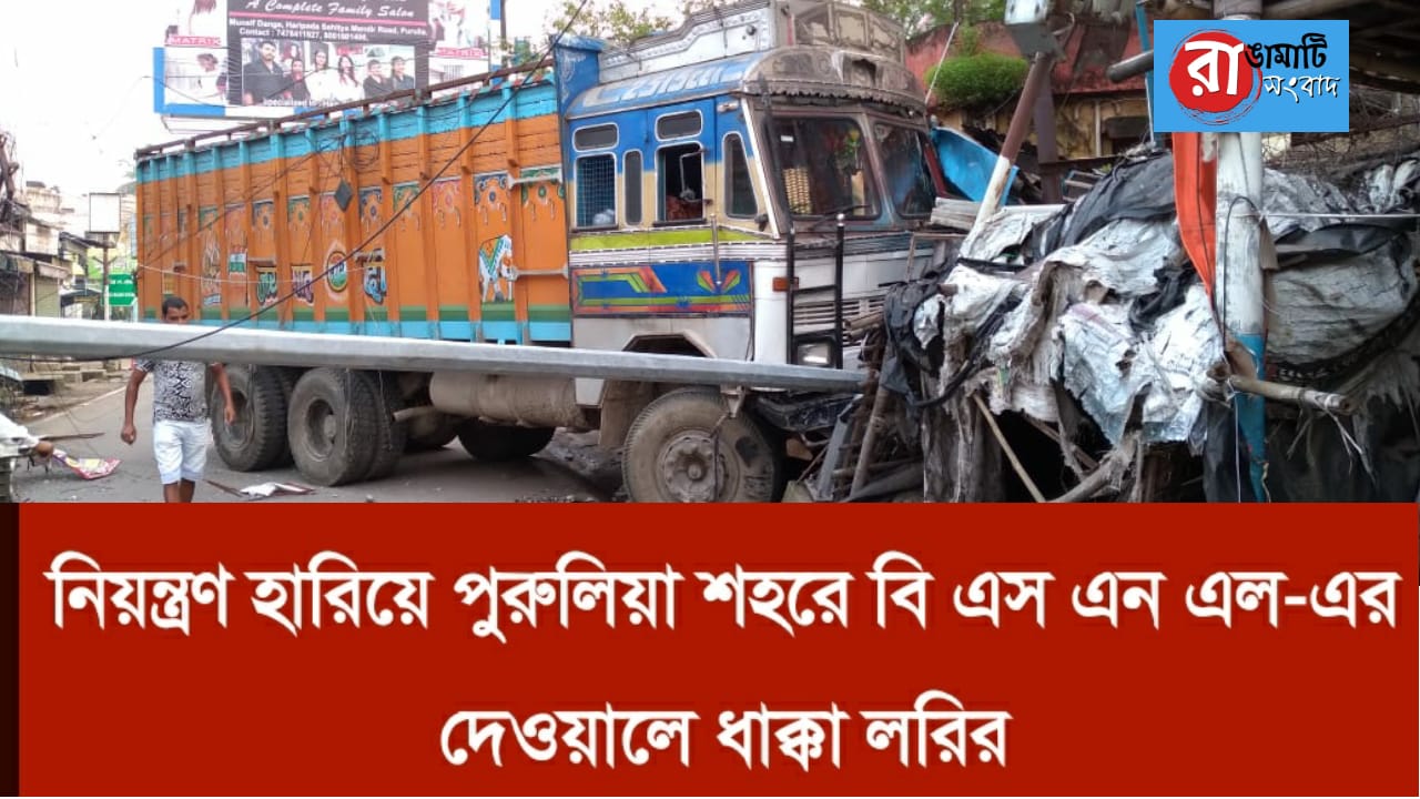 একটি মাল বেঝাই লরি নিয়ন্ত্রণ হারিয়ে পুরুলিয়া শহরের প্রাণ কেন্দ্র পুরুলিয়া-চাইবাসা রোডের বি এস এন এল অফিসের দেওয়ালে ধাক্কা মারলে দেওয়াল সহ দু-তিনটি রাস্তার ধারের দোকান ও তিনটি বিদ্যুৎ পোল ভেঙে যায়। ঘটনা শনিবার ভোর বেলার।