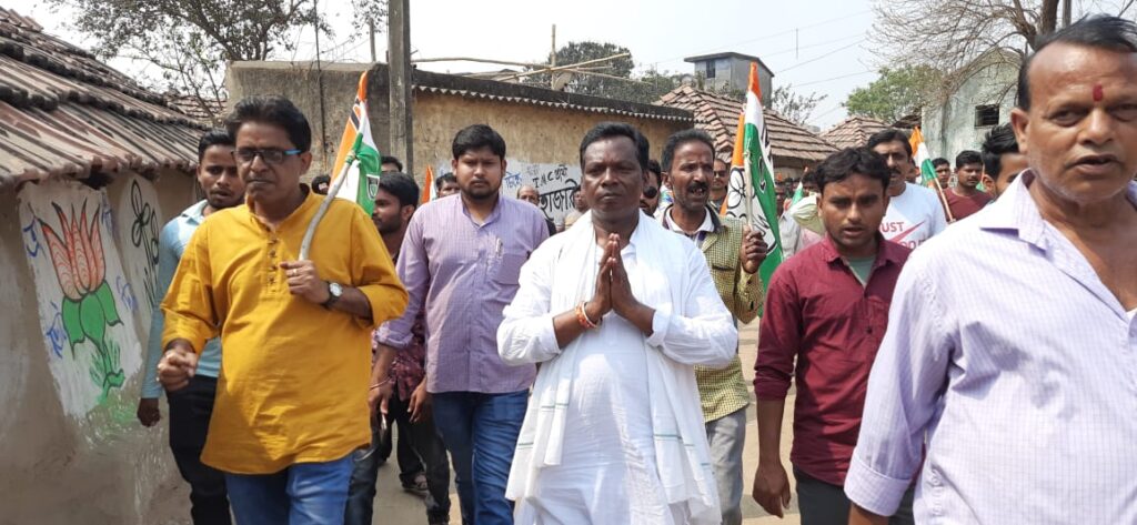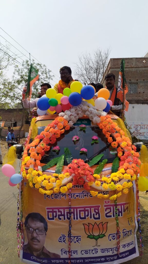 কাশিপুরে গাড়িতে করে ভোট প্রচারে অংশগ্রহন করলেন বিজেপি প্রার্থী কমলাকান্ত হাঁসদা।